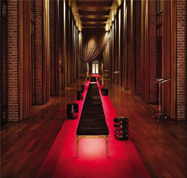 布宜諾斯艾利斯法恩納酒店是由倉庫改建的。酒店處處散發(fā)出性感的精致氣息,整座酒店沉浸在黑暗的燈光和鮮紅的血色當(dāng)中,既神秘又性感。主大堂設(shè)有一個長長的走廊,高高的天花板和長長的窗簾,給人一種徜徉在“愛麗絲夢游仙境”的感覺。