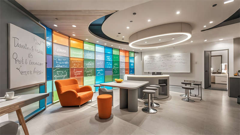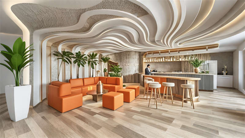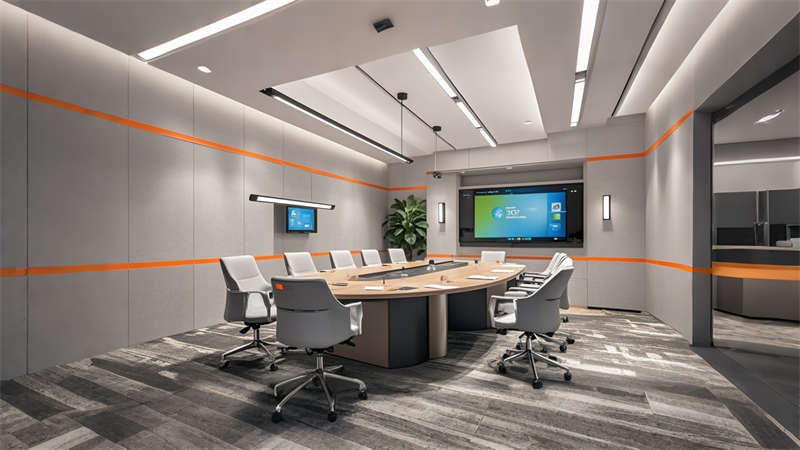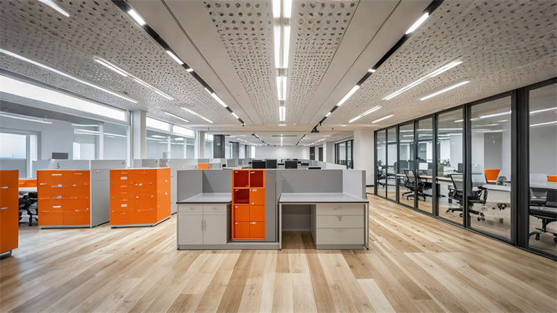 本項目為1800㎡現(xiàn)代簡約風(fēng)格辦公室整體設(shè)計,以 ' 高效?活力?互聯(lián) ' 為核心設(shè)計理念。空間規(guī)劃采用動靜分區(qū)原則,前廳通過淺灰大理石與橙色 logo 的碰撞凸顯企業(yè)形象,開放辦公區(qū)運(yùn)用玻璃隔斷保證采光與交流效率。色彩體系以企業(yè)標(biāo)準(zhǔn)色淺灰為主調(diào),搭配活力橙點綴,木色中和冷峻感。材質(zhì)選用環(huán)保型穿孔鋁板、防滑地磚和 E0 級板材,集成智能會議系統(tǒng)和隱藏式線管設(shè)計。重點空間如高管辦公室采用深胡桃木提升質(zhì)感,休息區(qū)通過波浪吊頂和模塊沙發(fā)營造輕松氛圍。照明系統(tǒng)采用 4000K 色溫 LED 線型燈帶,搭配局部裝飾吊燈,確保工作照度與空間美感平衡。全案貫徹人體工學(xué)設(shè)計,預(yù)留 20% 彈性空間適應(yīng)未來發(fā)展需求。