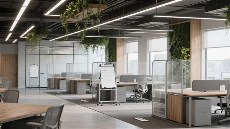 設(shè)計(jì)更以人文觸覺(jué)消解科技冰冷感:企業(yè)標(biāo)志性的霧青藍(lán)貫穿于軟裝細(xì)節(jié),4000K色溫照明呵護(hù)視覺(jué)舒適度,模塊化綠植系統(tǒng)構(gòu)建立體呼吸網(wǎng)絡(luò)。從智能調(diào)光玻璃到聲學(xué)毛氈墻面,每處創(chuàng)新皆隱于無(wú)形,讓科技真正服務(wù)于人的感知體驗(yàn)。這座合肥辦公空間,正以靜默的設(shè)計(jì)語(yǔ)言詮釋著未來(lái)工作場(chǎng)域的更多可能——當(dāng)自然、科技與人文在此共振,辦公不再是程式化的容器,而成為激發(fā)創(chuàng)造力的有機(jī)生命體。
