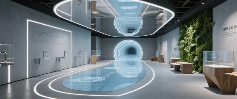 各區(qū)域通過四大統(tǒng)一性語言緊密串聯(lián):霧霾藍橢圓金屬門把手貫穿全空間,再生材料家具呼應可持續(xù)發(fā)展理念,聲學墻面嵌入本地植物標本強化生態(tài)屬性,智能燈光系統(tǒng)則通過4000K色溫線性燈帶實現(xiàn)晝夜場景的無縫切換。特別設計的全息投影展廳與智能階梯會議室,通過LED交互地屏與AR懸浮展臺,將品牌科技基因融入空間體驗。
