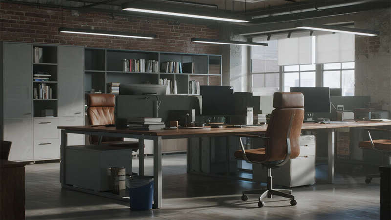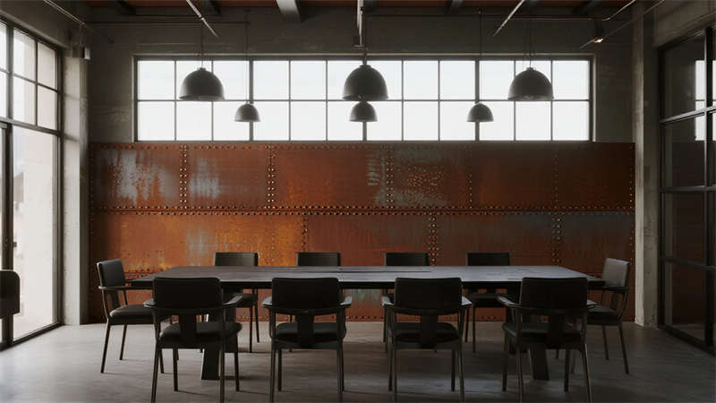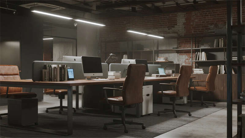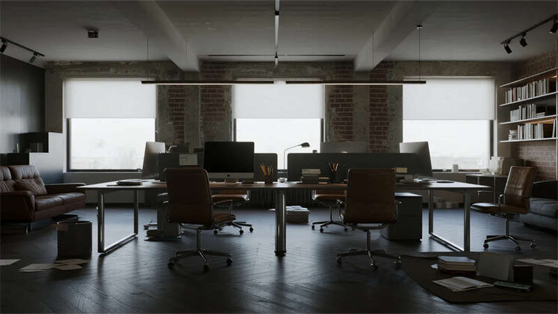 這組工業(yè)風(fēng)辦公室設(shè)計(jì)以裸露結(jié)構(gòu)和復(fù)古質(zhì)感為核心,通過混凝土、金屬和木質(zhì)材料的碰撞,打造出兼具實(shí)用性與藝術(shù)感的辦公空間??臻g保留了建筑的原始肌理,如天花板的管線和墻面的磚紋,搭配黑色鐵藝家具和深色調(diào)軟裝,營(yíng)造出冷峻而富有張力的氛圍。局部通過皮質(zhì)沙發(fā)、綠植和暖光燈具軟化工業(yè)風(fēng)的硬朗感,增添人文氣息。