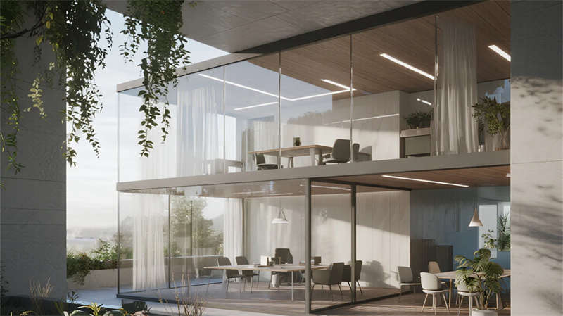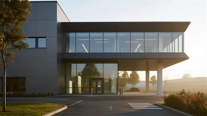 本設(shè)計(jì)以現(xiàn)代簡(jiǎn)約語(yǔ)言重構(gòu)廠房美學(xué)。設(shè)計(jì)摒棄冗余裝飾,聚焦材料本質(zhì)——銀灰金屬立面與通透玻璃幕墻形成虛實(shí)對(duì)比,利落線條切割出幾何體塊,在光影流動(dòng)中彰顯力量感。廠區(qū)布局強(qiáng)調(diào)功能與自然的共生:屋頂光伏板陣列呼應(yīng)綠色生產(chǎn)理念,嵌入式空中花園與竹林連廊為鋼鐵空間注入呼吸感,員工休憩區(qū)模糊了工業(yè)與生活的邊界。