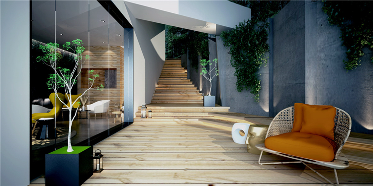本案度假酒店設(shè)計(jì)的重點(diǎn)在于表達(dá)人與自然、現(xiàn)代裝飾與自然環(huán)境的融合。每一組家具的設(shè)計(jì)、每一個(gè)走廊通道的位置,在這里都能感受到時(shí)尚與自然,毫不違和。