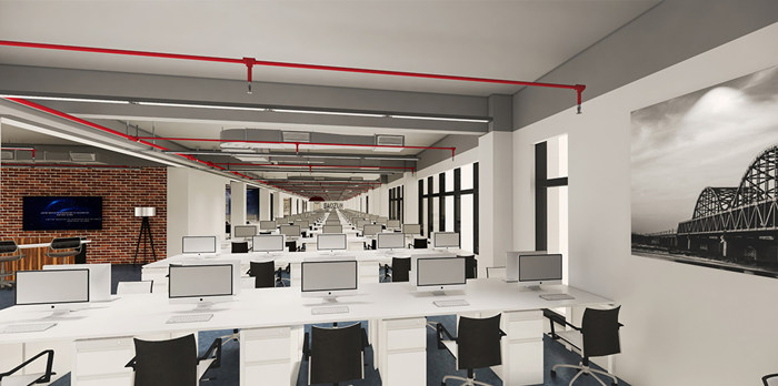 電子商務商業(yè)伙伴和領(lǐng)先的技術(shù)研發(fā)及解決方案公司。設(shè)計團隊根據(jù)電商的科技創(chuàng)新與行業(yè)桂冠特性,在設(shè)計中采用具有科技力量的LOFT風格,并將企業(yè)特性經(jīng)過藝術(shù)手法運用到辦公空間設(shè)計之中,使平常的空間關(guān)系發(fā)生了變化,從而營造出具有科技、創(chuàng)新、活力的辦公空間氛圍。