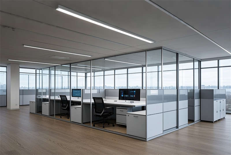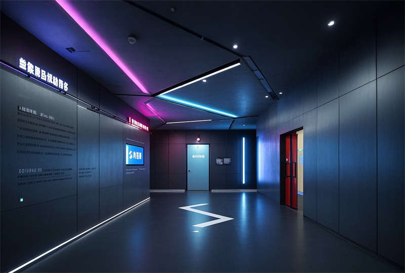 本案為 6000 平方米現(xiàn)代化科技辦公樓裝修項(xiàng)目,設(shè)計(jì)采用 ' 未來辦公生態(tài) ' 理念,以藍(lán)灰主色調(diào)構(gòu)建專業(yè)商務(wù)氛圍。空間規(guī)劃突破傳統(tǒng)格局,大堂設(shè)置 10 米挑空 LED 藝術(shù)裝置墻,智能光控系統(tǒng)實(shí)現(xiàn)晝夜模式切換。開放式辦公區(qū)采用模塊化組合家具,集成無線充電、智能升降等人性化功能。會(huì)議室配置可觸控霧化玻璃隔斷系統(tǒng),實(shí)現(xiàn)空間靈活轉(zhuǎn)換。特別設(shè)計(jì)的階梯會(huì)議中心配備全景聲控系統(tǒng),墻面采用吸音穿孔鋁板確保會(huì)議私密性。環(huán)保理念貫穿始終,選用零甲醛板材和可回收地毯,屋頂花園配置雨水收集系統(tǒng)。燈光設(shè)計(jì)采用色溫可調(diào) LED 光源,通過智能中控系統(tǒng)實(shí)現(xiàn)場(chǎng)景模式一鍵切換,打造高效、舒適、可持續(xù)發(fā)展的新型辦公生態(tài)圈。