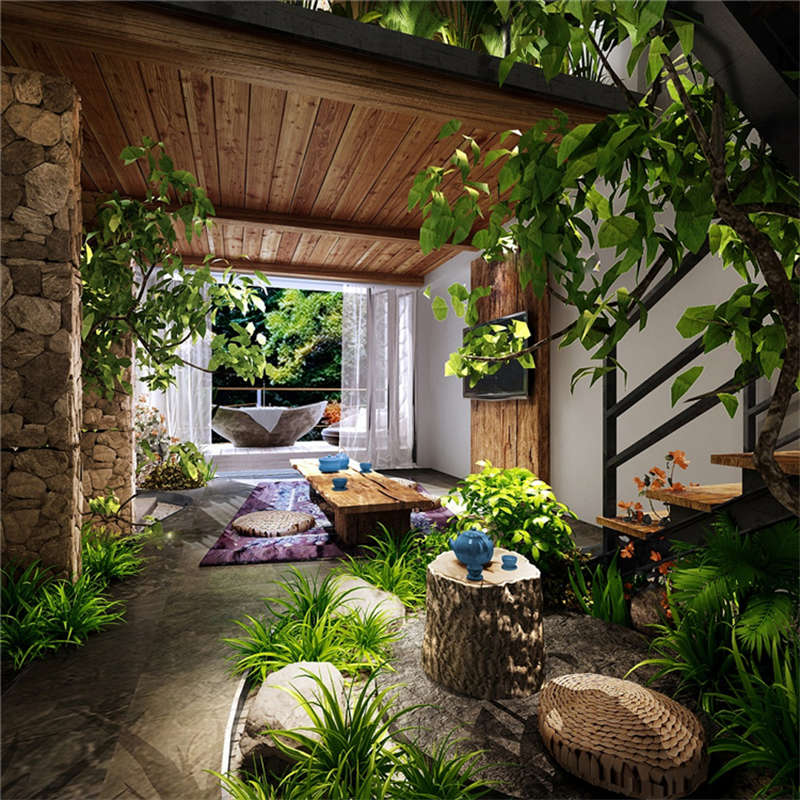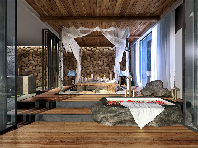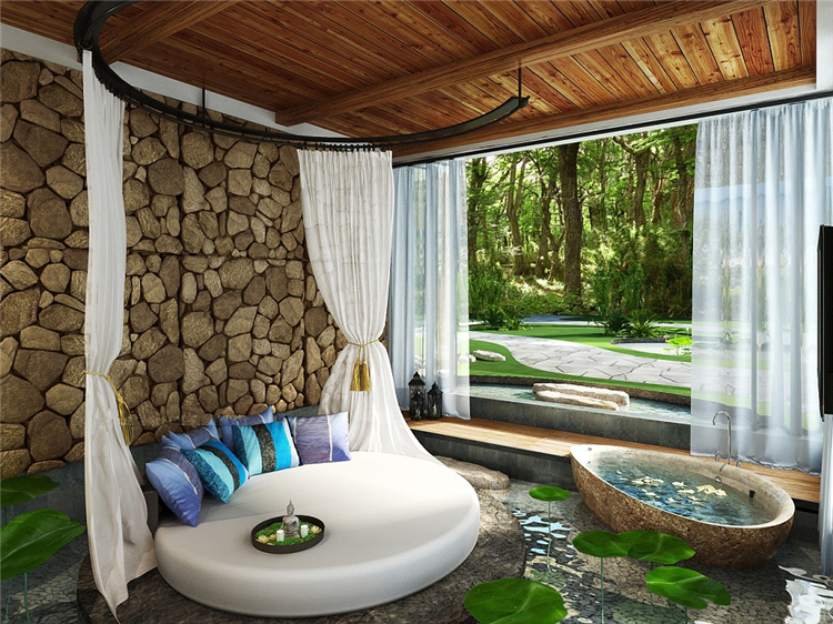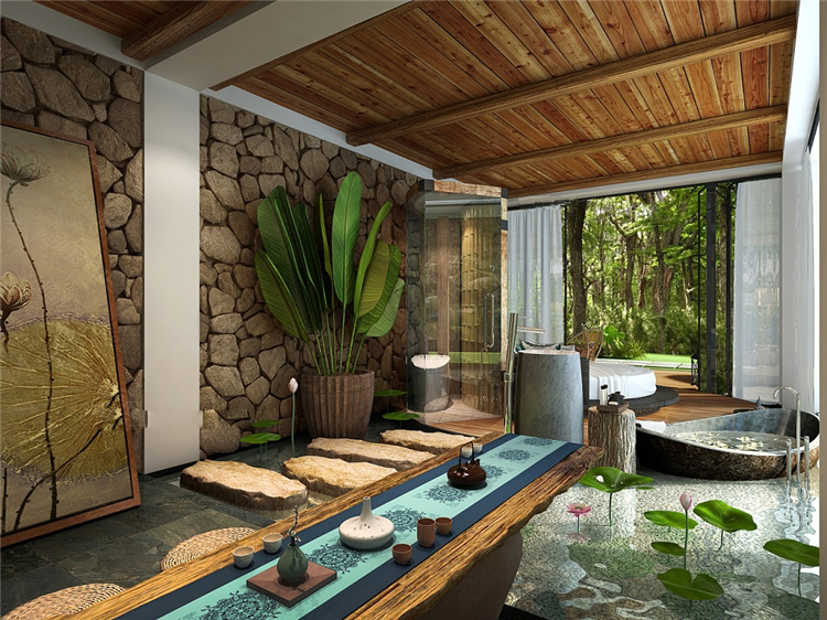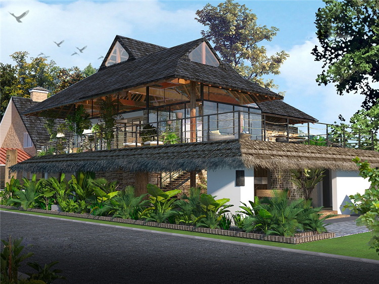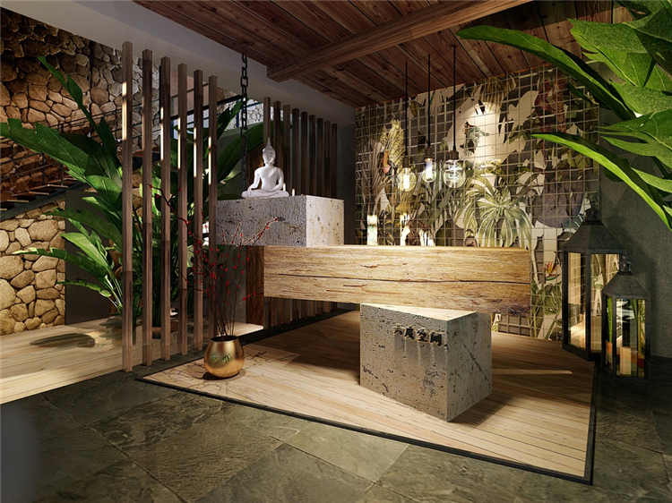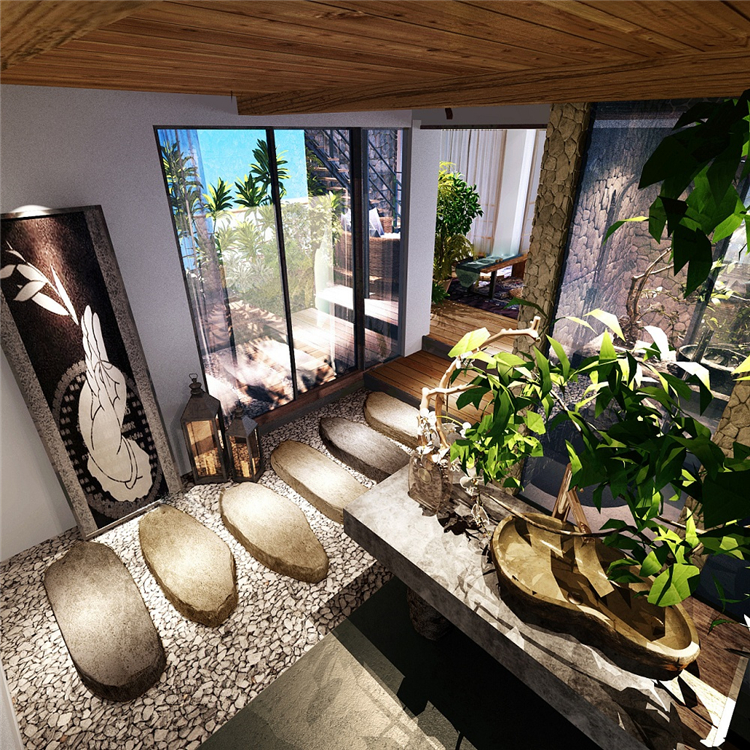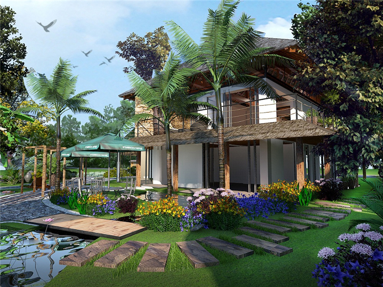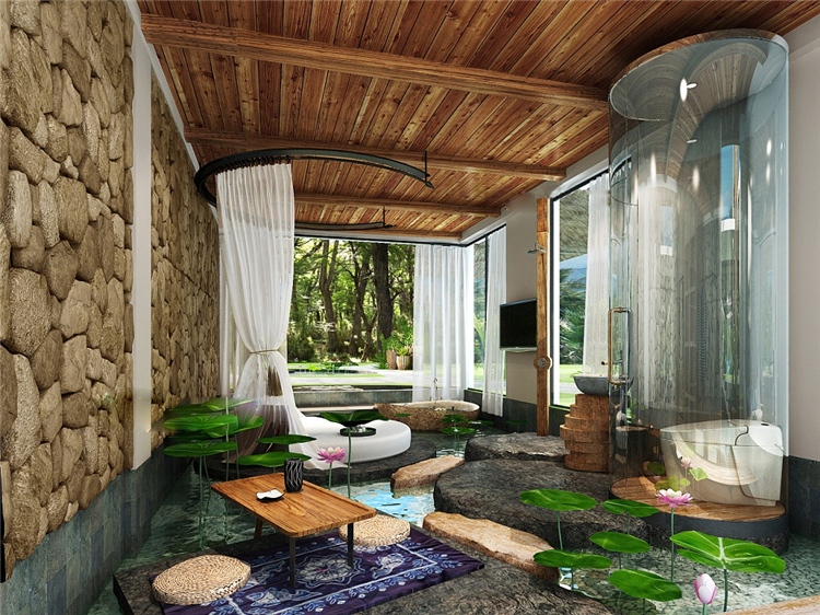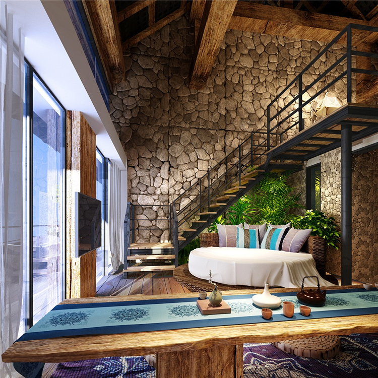 本案民宿度假酒店采用東南亞裝飾設(shè)計風(fēng)格