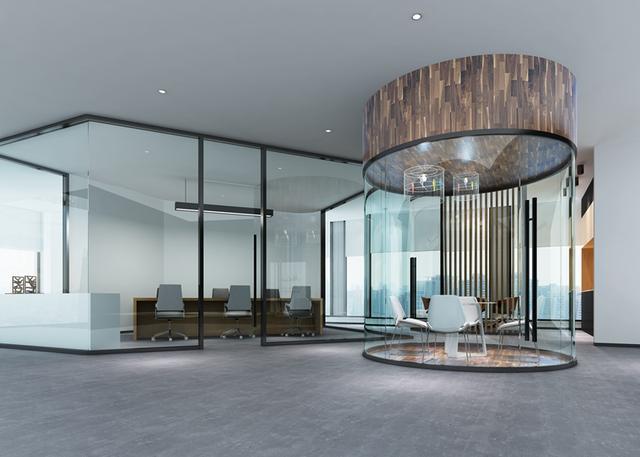 像“巢”一樣的圓柱形洽談區(qū)別有寓意,玻璃材質既保證了客戶在洽談時視覺上的通透,也照顧了客戶心理上對私密性的需求。