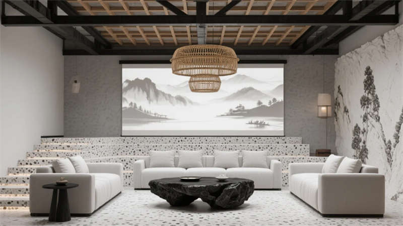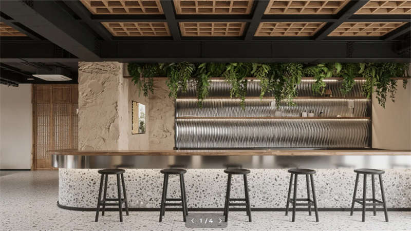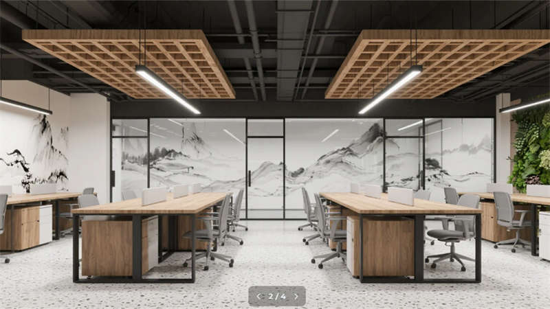 新中式工業(yè)風(fēng)骨架支撐起詩意場(chǎng)景,智能光療系統(tǒng)與磁吸供電科技隱于無形。云會(huì)議艙的煙雨江南數(shù)字畫卷,與夯土吧臺(tái)的粗糲質(zhì)感形成時(shí)空回響。這里不僅是效率容器,更是滋養(yǎng)人文精神的山川微縮劇場(chǎng),在機(jī)械理性中重建天人合一的當(dāng)代范本。