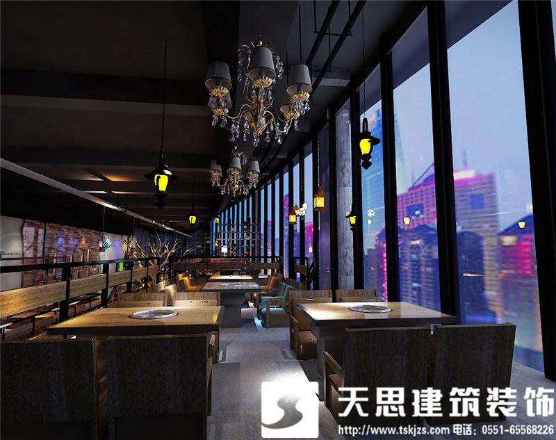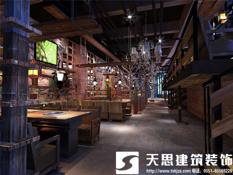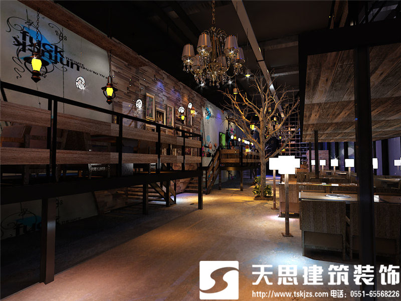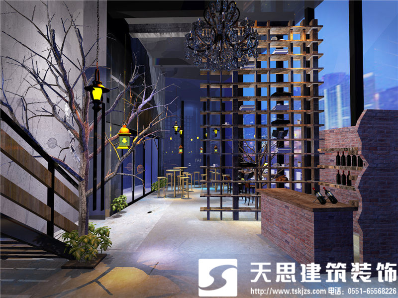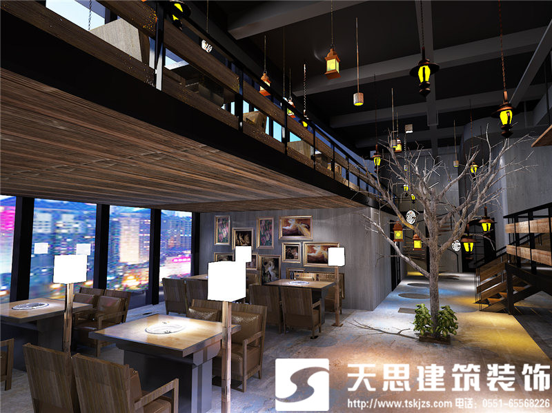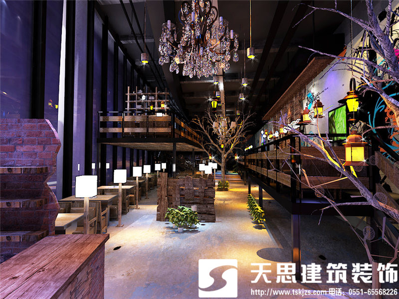 挑空的設(shè)計(jì)使一層的開(kāi)敞空間簡(jiǎn)潔而清晰,合理的區(qū)域劃分,凌空而起的二層餐飲區(qū),將挑空設(shè)計(jì)處理到最舒服的狀態(tài)。流光溢彩的琉璃燈讓簡(jiǎn)約的設(shè)計(jì)愈發(fā)有了韻味,別致的風(fēng)景畫(huà)懸掛于清水混凝土墻面上,讓單調(diào)的色澤有了藝術(shù)的張力。頂面、地面和墻面只做簡(jiǎn)單處理,采用清水混凝土或原木板等自然材料,不添加任何多余的修飾,如此精簡(jiǎn)的設(shè)計(jì)卻絲毫不減空間的魅力。