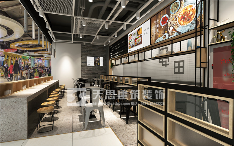 設(shè)計(jì)裝修項(xiàng)目:晏田里特色小吃店 裝修地點(diǎn):國(guó)購(gòu)三里庵 設(shè)計(jì)師:胡工 風(fēng)格:工業(yè)風(fēng) 方案一外觀(guān)效果: 方案二外觀(guān)效果: 內(nèi)部效果: