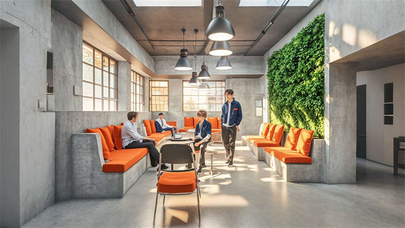 3) 色彩策略運(yùn)用冷色調(diào)提升作業(yè)專注度,暖色點(diǎn)綴緩解視覺(jué)疲勞。材料選擇上,金屬格柵、清水混凝土與環(huán)氧地坪的搭配兼顧耐用性與美學(xué)表達(dá),集成式 LED 照明系統(tǒng)實(shí)現(xiàn)能耗降低。該設(shè)計(jì)在滿足 ISO 生產(chǎn)標(biāo)準(zhǔn)的同時(shí),通過(guò)人性化休息區(qū)與智能管理系統(tǒng),打造現(xiàn)代制造業(yè)空間新標(biāo)桿。