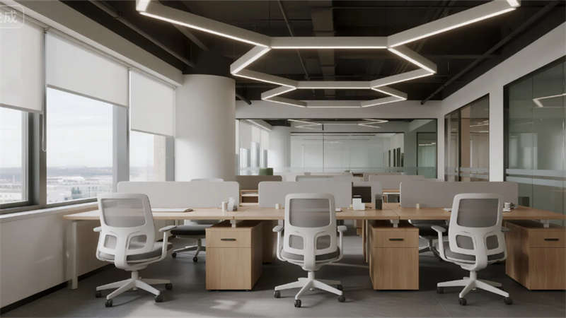 生產(chǎn)空間聚焦高效與潔凈,智能機械臂單元與模塊化管線系統(tǒng)滿足精密材料制造需求,冷色調(diào)照明強化科技嚴謹感。研發(fā)區(qū)域突破傳統(tǒng)廠房格局,落地窗引入自然光與園區(qū)景觀,垂直綠墻凈化空氣的同時激發(fā)創(chuàng)造力。
