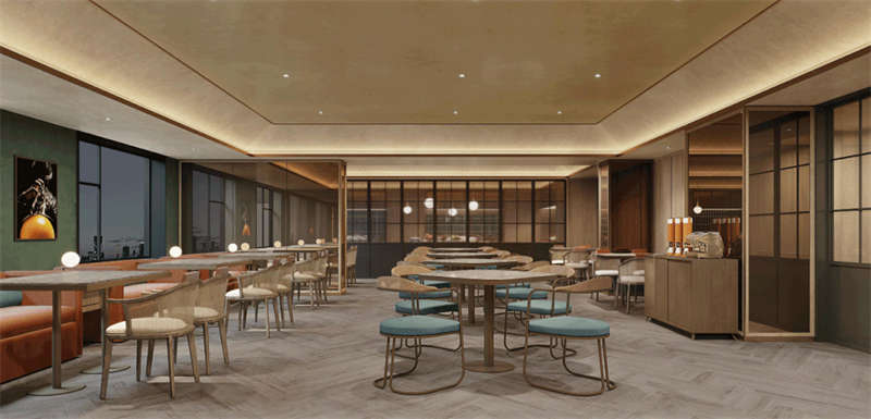 在歡快的爵士樂曲調(diào)中,捕捉到美式復古鄉(xiāng)村風格,以空間意向為早餐餐廳拉開生活的帷幕。延續(xù)橙綠色過渡與碰撞的軟裝飾基調(diào)。以熱帶植物為基調(diào)的藤桌椅,在溫和的木飾面與保平特種藝術(shù)漆相結(jié)合的空間背景下,營造出舒適的感官體驗。墻上掛著爵士鄉(xiāng)村樂隊的照片,營造出一種藝術(shù)氛圍。在享受美食的同時,也能在微妙的空間層次感中獲得不錯的體驗。