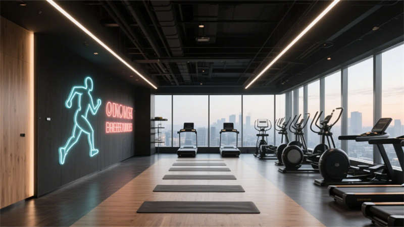 公共空間亮點紛呈:全日餐廳以垂直綠植墻與開放式廚房激活社交氛圍;無柱宴會廳憑借鏡面天花板與水晶吊燈陣列,打造層疊的光影盛宴;健身房通過全景落地窗將城市景觀融入運動場景,啞光黑器械與霓虹燈裝飾碰撞出現(xiàn)代活力。細(xì)節(jié)處更顯匠心——電梯間的金屬線條浮雕、走廊的幾何光影地毯,均以藝術(shù)化手法弱化傳統(tǒng)酒店的空間邊界。