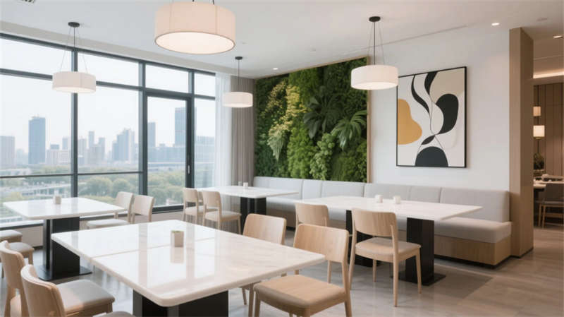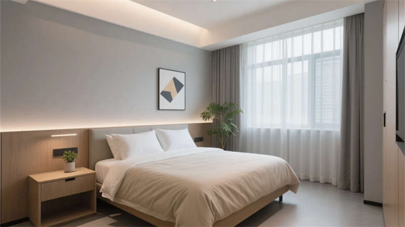 從大堂至客房,落地窗最大限度引入天光,中性色調(diào)與淺木元素構(gòu)成溫暖基底。餐廳與酒吧的開(kāi)放式布局促進(jìn)社交,而水療中心的弧形理療床和間接光源則傳遞靜謐療愈力。健身房與泳池區(qū)通過(guò)鏡面、綠植墻和通透玻璃,模糊室內(nèi)外界限。走廊的設(shè)計(jì)進(jìn)一步強(qiáng)化了空間的連貫性——隱藏式燈帶如星辰鋪路,藝術(shù)點(diǎn)綴升華細(xì)節(jié)品味,每一步都沉浸于流動(dòng)的簡(jiǎn)約詩(shī)意中。整個(gè)項(xiàng)目摒棄冗余裝飾,用材質(zhì)本真與光影敘事,在合肥城市肌理中打造出一處“寧?kù)o的歸心之所”。