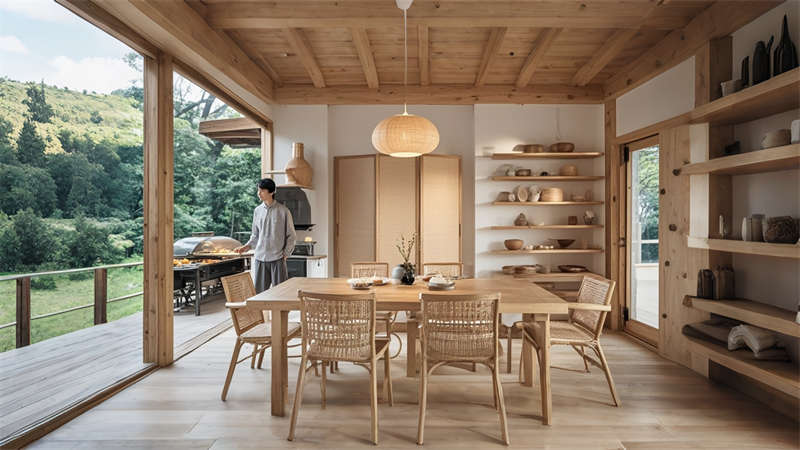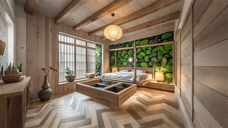 本 1500 平民宿設(shè)計(jì)以 ' 在地重生 ' 為核心理念,采用現(xiàn)代自然主義手法重構(gòu)傳統(tǒng)民居??臻g規(guī)劃上保留原始建筑格局,設(shè)置12間主題客房與6大公共功能區(qū)。色彩體系以米白、淺灰為基底,點(diǎn)綴墨綠、陶土等大地色系。材料選用夯土、回收老木、亞麻等環(huán)保材質(zhì),搭配智能化隱蔽工程。
