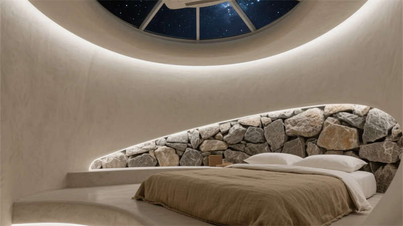 功能布局巧妙銜接室內(nèi)外呼吸感:接待廳玻璃幕墻引竹林入畫,禪茶室借枯山水凝神靜氣;餐廳與書吧以可移動(dòng)家具實(shí)現(xiàn)場(chǎng)景轉(zhuǎn)換,暗藏式光源在夜間描摹空間輪廓。客房設(shè)計(jì)強(qiáng)調(diào)私密療愈,星空穹頂與混凝土浴缸形成原始與現(xiàn)代的詩意碰撞。