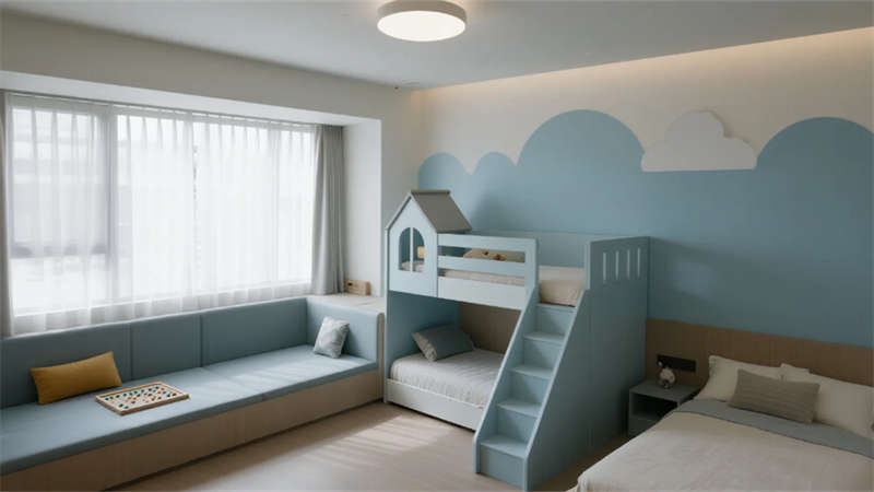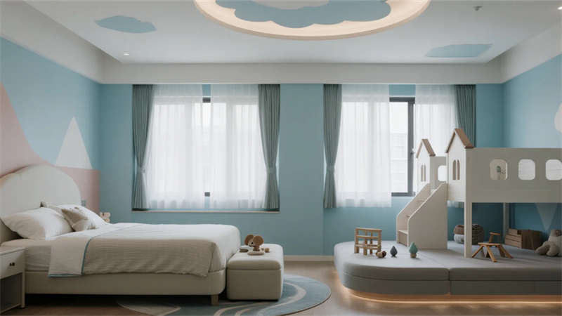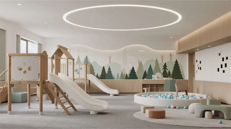 公共區(qū)域強(qiáng)調(diào)功能與美學(xué)的平衡:開放式游樂區(qū)釋放孩子天性,閱讀角的樹洞書架激發(fā)想象力,手工坊的彩虹收納系統(tǒng)培養(yǎng)創(chuàng)造力。戶外庭院融入沙坑與綠植,讓自然成為游戲場;夜晚的星空影音室則轉(zhuǎn)為家庭溫馨劇場。整體設(shè)計(jì)通過流動的空間布局,讓家長與孩子在簡約美學(xué)中共享親密時光,重新定義合肥親子度假的體驗(yàn)方式。
