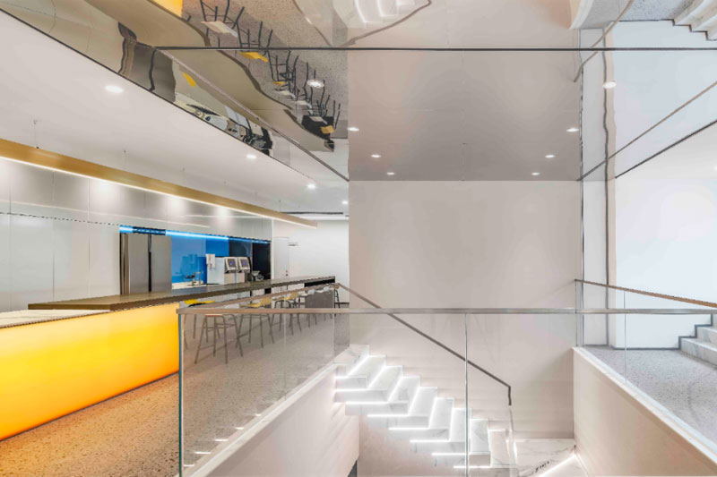 沉浸式體驗人與空間交互,茶水區(qū)通過鏡面天花反射,光影在立體空間中流動,超動感空間氛圍就此而生,板塊的不斷更新為它帶來永不停歇的活力,這里是“巨人”的世界。
