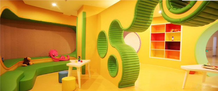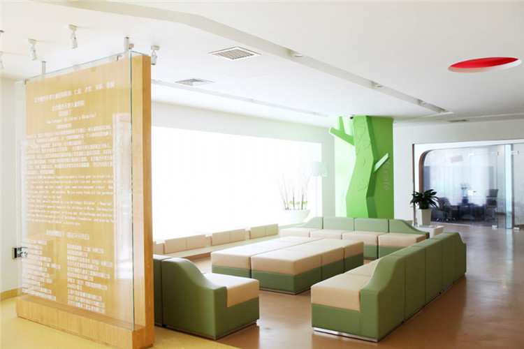 2.多層次的游樂空間,這兩點被充分的應用,在過往的醫(yī)院幾乎是未有過的.目的是利用鮮艷的色彩和流動的空間對人產(chǎn)生心理的影響,讓兒童減少因為環(huán)境的變化和疾病本身帶來的焦慮,而在此就醫(yī)過程中感到全方位的舒適與輕松.空間內(nèi)的定制家具,在以趣味性和游戲感為主題設計的同時,細節(jié)上也全部應用圓角和軟性材質(zhì)而避免對兒童造成傷害.