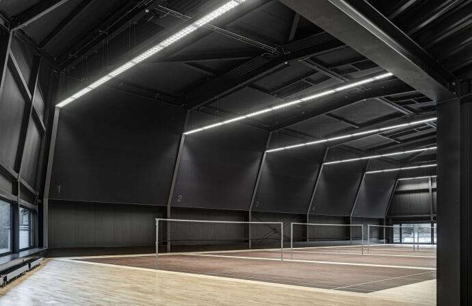 總的來說,在羽毛球館設(shè)計中,要充分利用自然光,使運(yùn)動員能夠準(zhǔn)確判斷球、高、落點(diǎn),不要讓太強(qiáng)的光線直接照射眼睛或反射眼睛上。