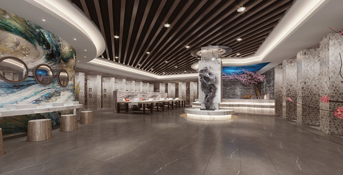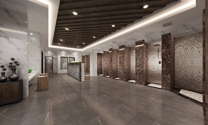 整體是現(xiàn)代風(fēng)格,深色系背景,貴氣十足,給人舒心的感官.細(xì)節(jié)處理到位,比如男/女浴區(qū)設(shè)計(jì),關(guān)鍵是做好防水,其次是品味,關(guān)鍵是高端,衛(wèi)生是第一.客人來(lái)洗浴中心,通常是要準(zhǔn)備洗澡,消除一天的乏倦,以及消除一些商務(wù)活動(dòng)或工作上所附帶的灰塵.