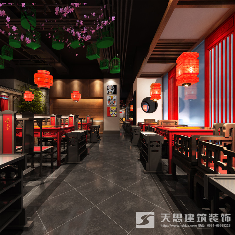 本次為合肥香天下火鍋店分店徽淮南店裝修設(shè)計(jì)效果,在本次火鍋店設(shè)計(jì)中,設(shè)計(jì)師采用新中式做為空間設(shè)計(jì)風(fēng)格,設(shè)計(jì)師希望讓客戶在這里感受到不一樣的氛圍。