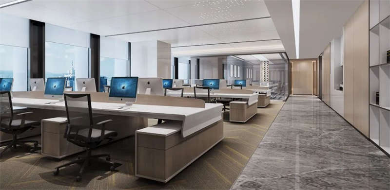 3.辦公室設(shè)計的吊頂首先要保證石膏板表面的平整性并且要潔凈無污染。石膏板的邊緣切割需要整齊一致、無劃傷、無缺楞掉角。除此之外,吊頂所采用的龍骨與龍骨架的強度與剛度要達標。龍骨的接頭處、吊掛處是受力的集中點,辦公樓裝修在施工時應注意按照要求進行加固。如果需要在龍骨上懸吊設(shè)備那么還應在龍骨上增加吊點。