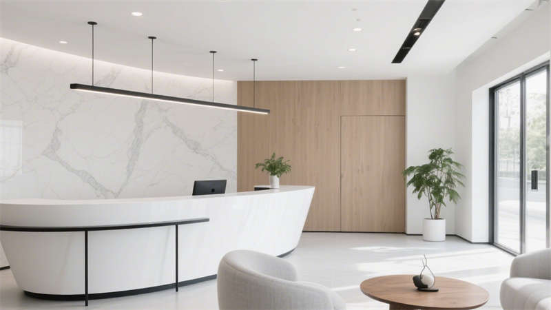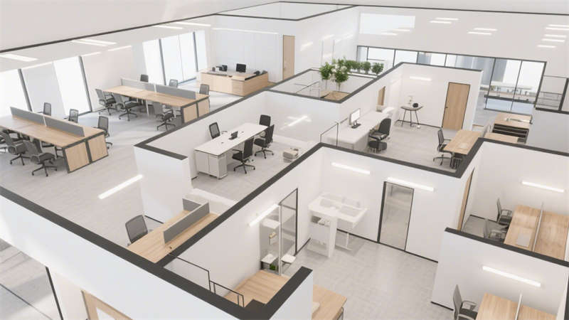 細節(jié)處理上,墻面采用簡潔的裝飾手法,避免過多繁復(fù)造型,地面材質(zhì)選擇耐磨且易清潔的種類,既符合辦公空間的實用需求,也保持了整體風(fēng)格的統(tǒng)一性。整體設(shè)計沒有多余的裝飾堆砌,而是通過對空間、色彩、材質(zhì)的精準把控,打造出一個兼具美學(xué)感與實用性的辦公環(huán)境,讓辦公空間既簡潔大氣,又能滿足日常辦公的各項功能需求。