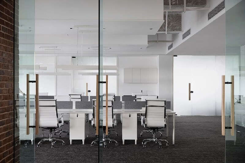 聯(lián)排落地窗滿足了最大程度的采光,玻璃隔斷更強化了室內通透,營造高潔、敞亮的良好溝通環(huán)境。其材質,不僅易打理,還能有效達到靜音功能,確保工作時的私密性。簡約基底之上,加入現(xiàn)代美式的輕復古格調,豐富質感。在公區(qū)大面積鋪設地毯,能為辦公時減少更多噪音。適當?shù)鼐G植與裝飾元素可以打破事務所固有的沉寂,從感官切入,化解一直以來人們對其產(chǎn)生的刻板影響。當行業(yè)面臨新生血液的迭代更替,思想與審美也將在無形中完成進階。