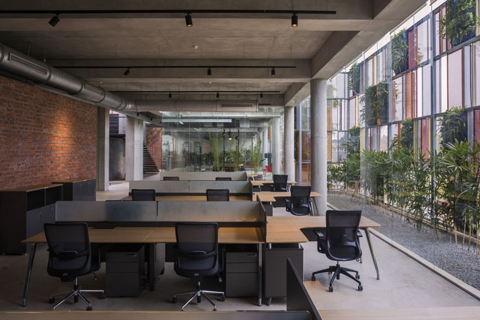 本次為工廠辦公大樓辦公室裝修設(shè)計效果圖,辦公室設(shè)計面積4000平方,設(shè)計師在辦公室設(shè)計中,以現(xiàn)場環(huán)境保持一致為前提,目的就是打造一個融合與廠房的辦公樓,而不是一個獨(dú)立的裝飾。