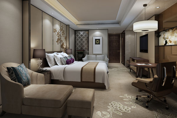 該項目用純美的色彩元素巧妙組合給賓客帶來舒適的視覺感受,將明亮、大膽、色彩豐富、絢麗多姿的色彩融匯在一起,大量運用有 紋理質(zhì)感.自然的中檔用料,關(guān)鍵部位采用體現(xiàn)高檔次的新型材料,更注重現(xiàn)代商務(wù)的穩(wěn)重與時俱進,東方情懷與西方實用主義在此完 美融合。