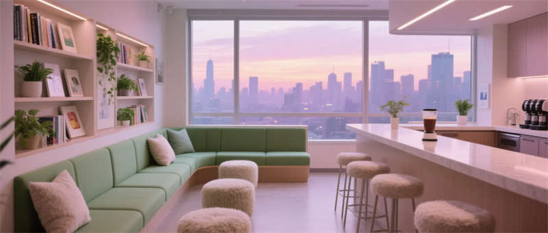 病房區(qū)引入景觀窗體系,將城市綠蔭轉(zhuǎn)化為動(dòng)態(tài)療養(yǎng)畫作,可調(diào)節(jié)光環(huán)境適配不同康復(fù)需求。核心的康復(fù)花園成為情感樞紐,蜿蜒小徑與冥想臺引導(dǎo)患者進(jìn)行感官重建。醫(yī)護(hù)空間中暖調(diào)材質(zhì)與私密卡座,為高強(qiáng)度工作提供精神緩沖。