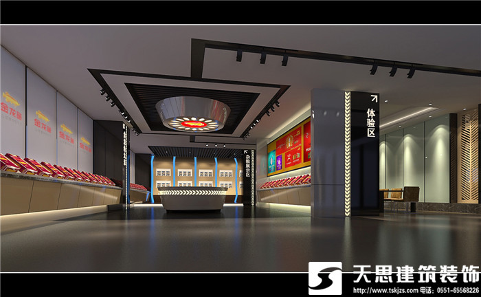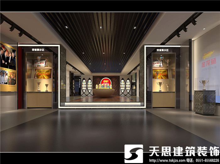展廳是提高產(chǎn)品和企業(yè)品牌形象的場所,表達(dá)個(gè)性風(fēng)格是這個(gè)空間的關(guān)鍵。金龍魚通過利用地面折線分割跑道的表現(xiàn)與背景形象的鮮明顏色相互配合產(chǎn)生強(qiáng)烈視覺沖擊效果,令人耳目一新,印象深刻。在其中部設(shè)計(jì)中,運(yùn)用厚重的體量感,如半圓形及魚形,將所有的空間有機(jī)地聯(lián)系起來,長久、富貴、不可侵犯。